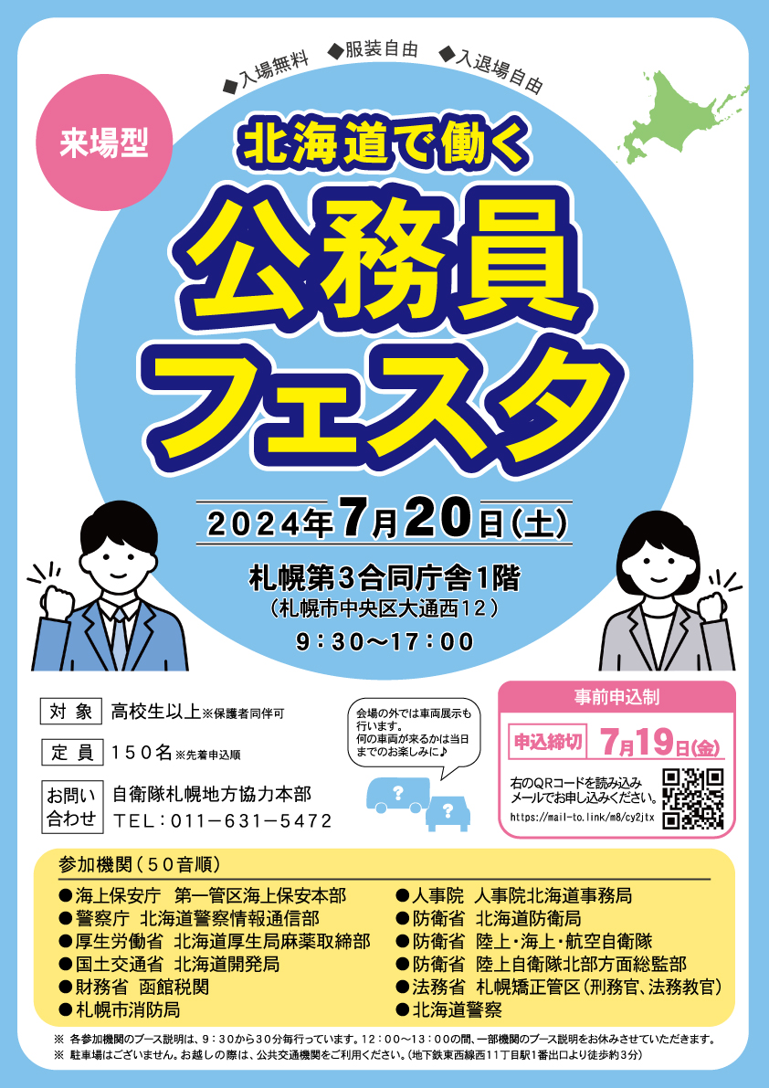 北海道内にある国家公務員・地方公務員の職場を紹介する合同説明会です。