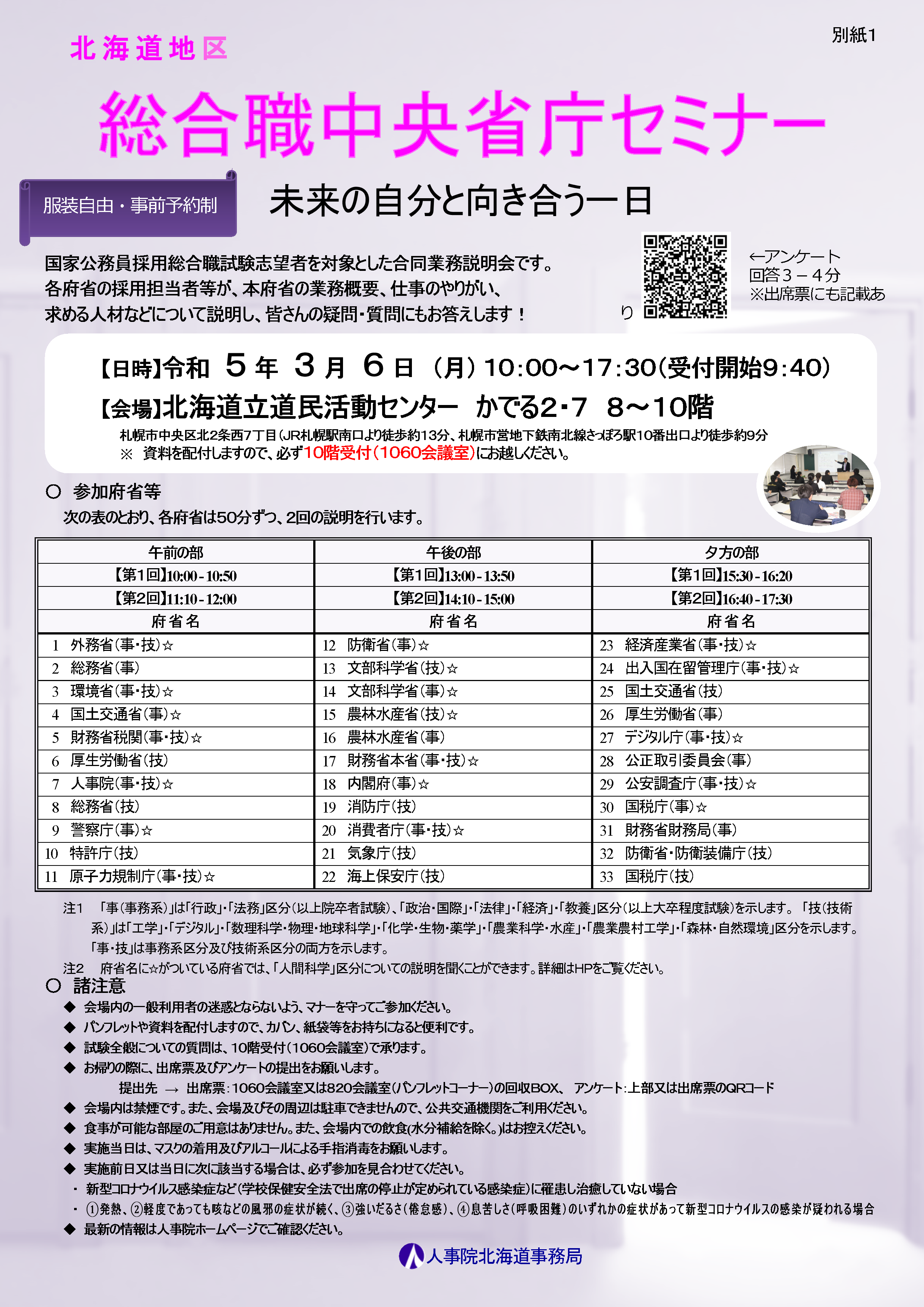 【北海道地区総合職中央省庁セミナーにおける新型コロナウイルス感染予防対策について】