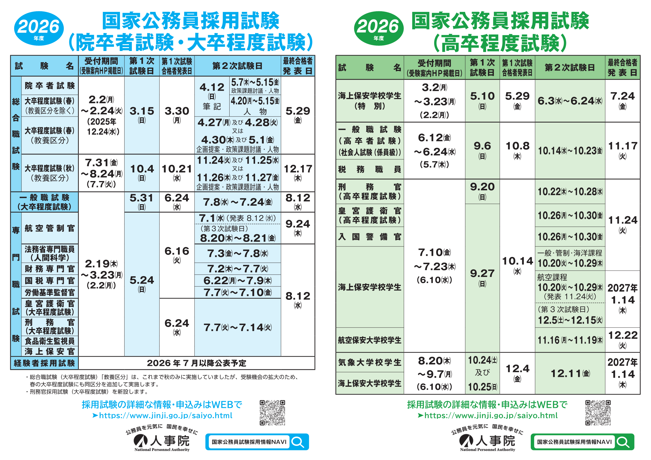 一般職試験(高卒者試験)(社会人試験(係員級))関東甲信越地域機関別採用実績(2022年度~2024年度)を更新しました。