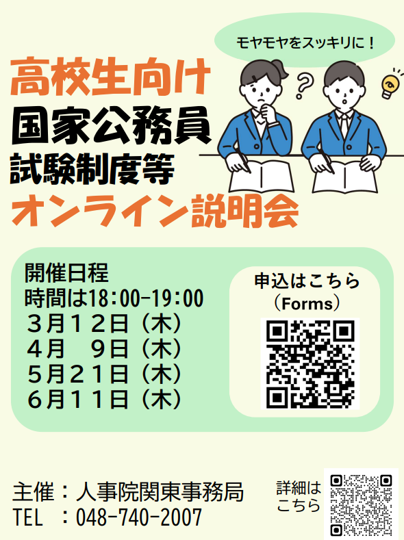 高校生だけでなく、国家公務員採用試験(高卒程度試験)に興味のある専門学校生、短大生、保護者の方も、ぜひ御参加ください!