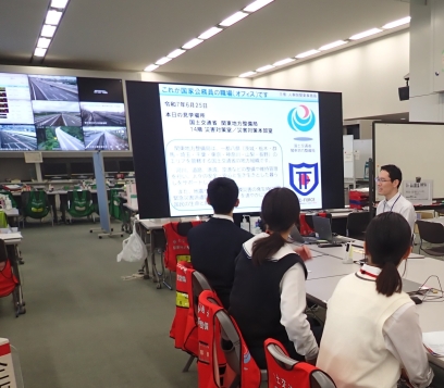 | 【関東地方整備局】 災害対策室などで、災害が起こった際の対応、現場仕事について学びました! |