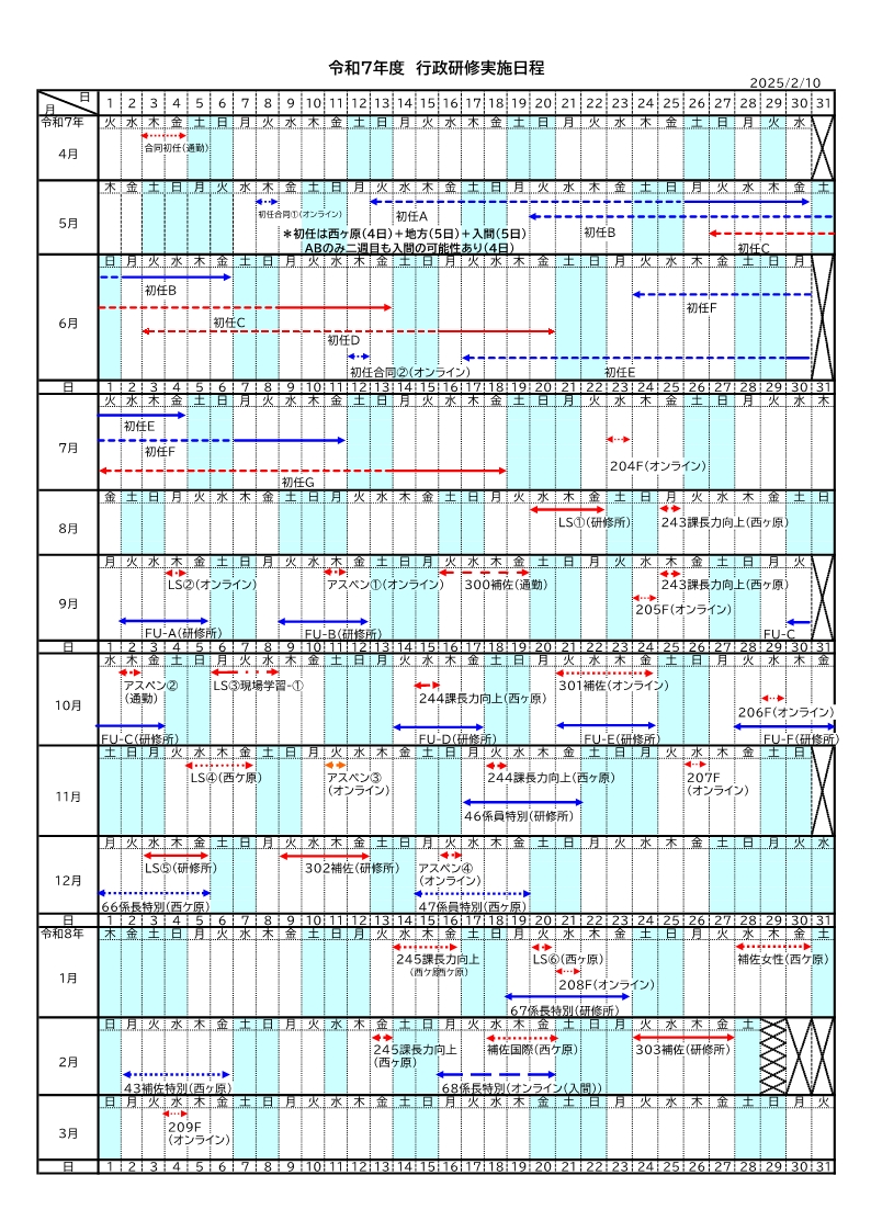 2 令和7年度行政研修日程表(令和7年2月10日現在)