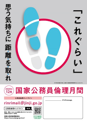 国家公務員の倫理意識の効果的な浸透を図るため、昨年度に引き続き、今年度も12月の1ヶ月間を「国家公務員倫理月間」と位置付け、全ての職員を対象とした研修の実施、管理職員等がメッセージを記入したポスターの掲示のほか、新たに倫理審査会会長及び委員からのメッセージ動画の配信や、職場内で公務員倫理について意見交換を行う機会を設けるなど多様な啓発活動を集中的に行います。