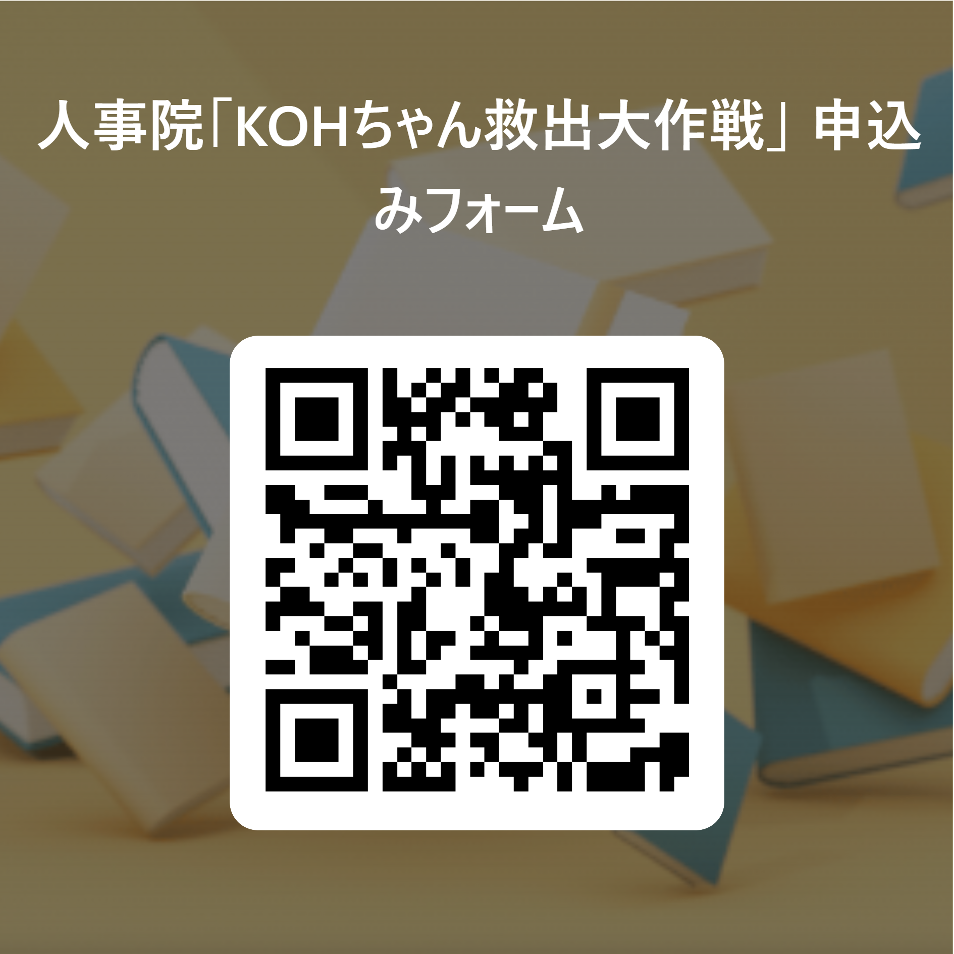 「KOHちゃん救出大作戦」 ※KOHちゃん:人事院のキャラクター ~謎解きを通して国家公務員を知ろう!~ 【主なプログラム】 ○KOHちゃんって何者? 国家公務員と人事院について知ろう! ○人事院の庁舎内を探険して、謎解きしながらKOHちゃんの忘れ物を探そう! ○総裁とお話ししよう&記念撮影! ○お土産に自由研究に役立つオリジナル冊子をプレゼント! 【日時・場所】 令和5年8月2日(水)13:30 ~ 15:00(予定) 人事院8階大会議室(13:20までに集合) 【対象】 小学生(原則として保護者同伴) ※推奨学年:小学3年生~6年生 (小学2年生以下及び中学生の方のご参加を制限するものではありません) 【応募方法】 本プログラムへの参加には事前予約が必要です。 7月21日(金)までに下記リンクよりお申込みください。 <申込フォームURL> https://forms.office.com/r/tcc4AXU0A5 |
