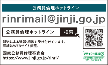 組織内外の相談・通報窓口の体制整備は各府省でほぼ整えられてきたが、職員に対するアンケート結果によると相談・通報窓口の存在を知らない職員も依然として一定数存在することから、相談・通報窓口の周知に引き続き取り組んだ。具体的には、国家公務員倫理月間の時期に合わせて作成している職員向けパンフレットに、倫理審査会が設置している公務員倫理ホットラインの連絡先、各府省が設置する相談・通報窓口の内部窓口や外部窓口の連絡先を記載する欄を設け、各府省が欄中に必要事項を記載した上で職員に周知した。また、職員が常時携帯できるように配布している国家公務員倫理カードについて、各府省毎の相談・通報窓口が記載されているものを配布した。各府省においては、これらのパンフレット・カードの活用のほか、相談・通報窓口のイントラネットへの掲載やメール等による職員への周知が行われた。