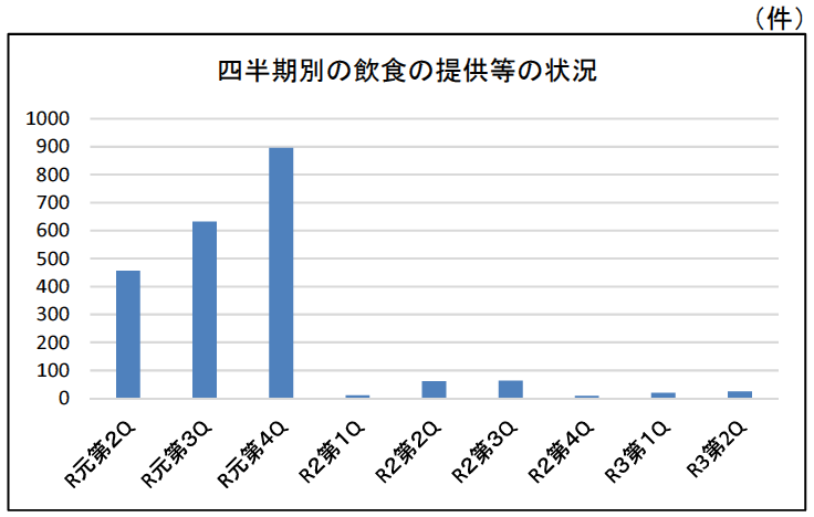 なお、直近3年における飲食の提供等の状況は以下のとおりとなっている。