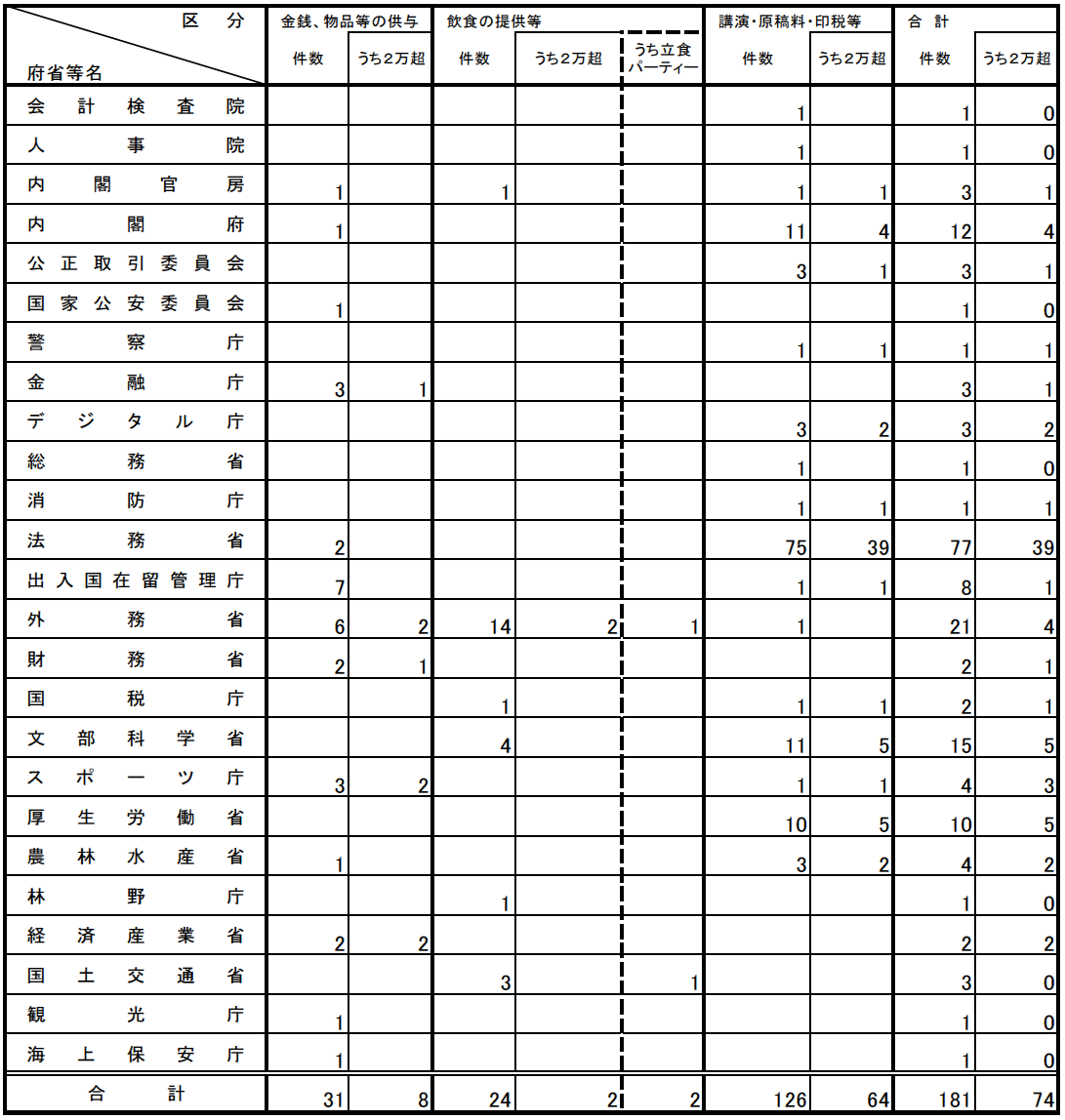 (注1)利害関係あり2件については、多数の者が出席する立食パーティーにおいて、飲食物の提供を受けたものであり、倫理規程における禁止行為の例外に該当する。