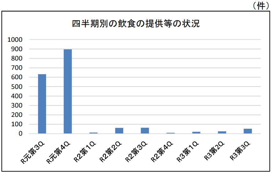 なお、直近3年における飲食の提供等の状況は以下のとおりとなっている。
