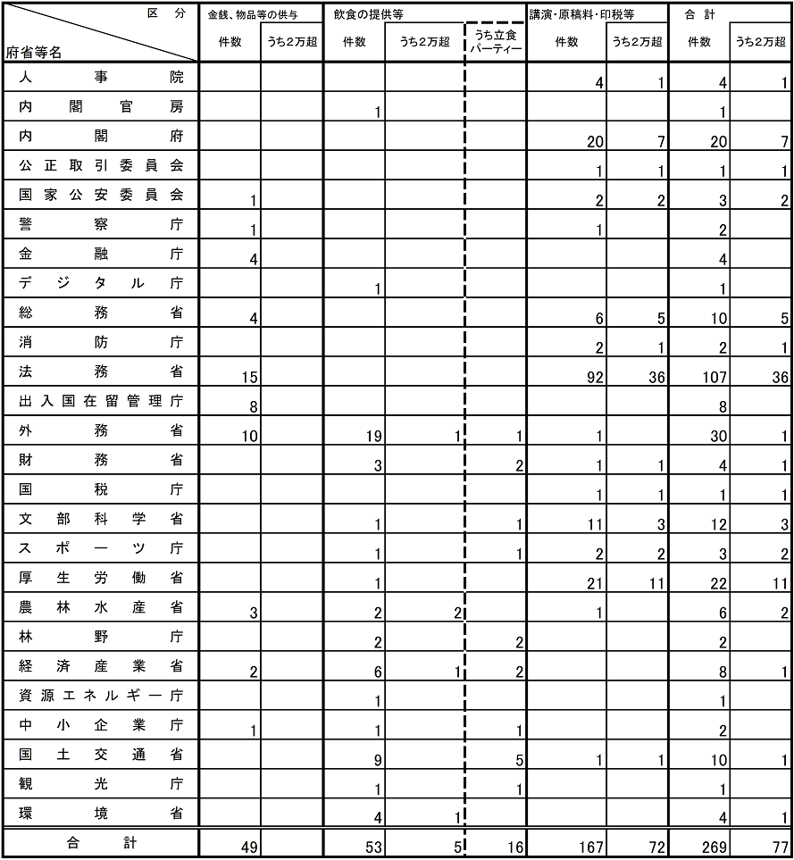 (注1)利害関係あり1件については、多数の者が出席する立食パーティーにおいて、透明性が確保された中で行われた抽選の当選賞品であり、倫理規程における禁止行為の例外に該当する。