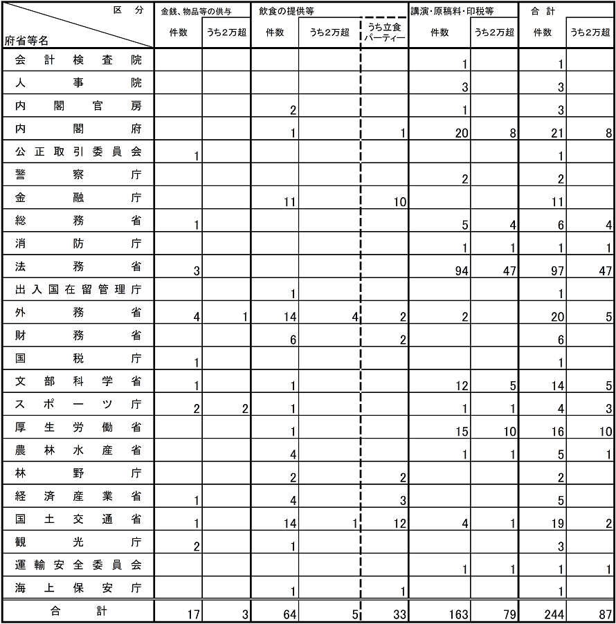 (注1)利害関係あり19件については、 多数の者が出席する立食パーティーにおいて飲食物の提供を受けたものなどであり、倫理規程における禁止行為の例外に該当する。