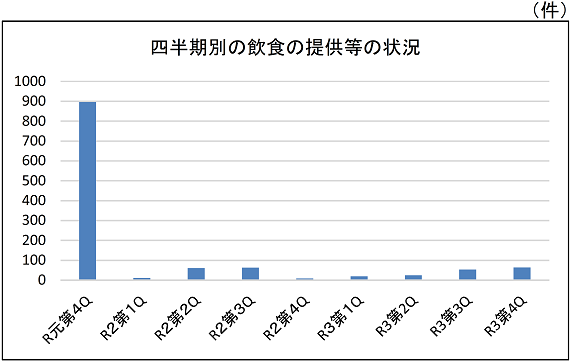 なお、直近3年における飲食の提供等の状況は以下のとおりとなっている。