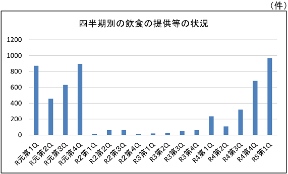 なお、令和元年度以降における飲食の提供等の状況は以下のとおりとなっている。