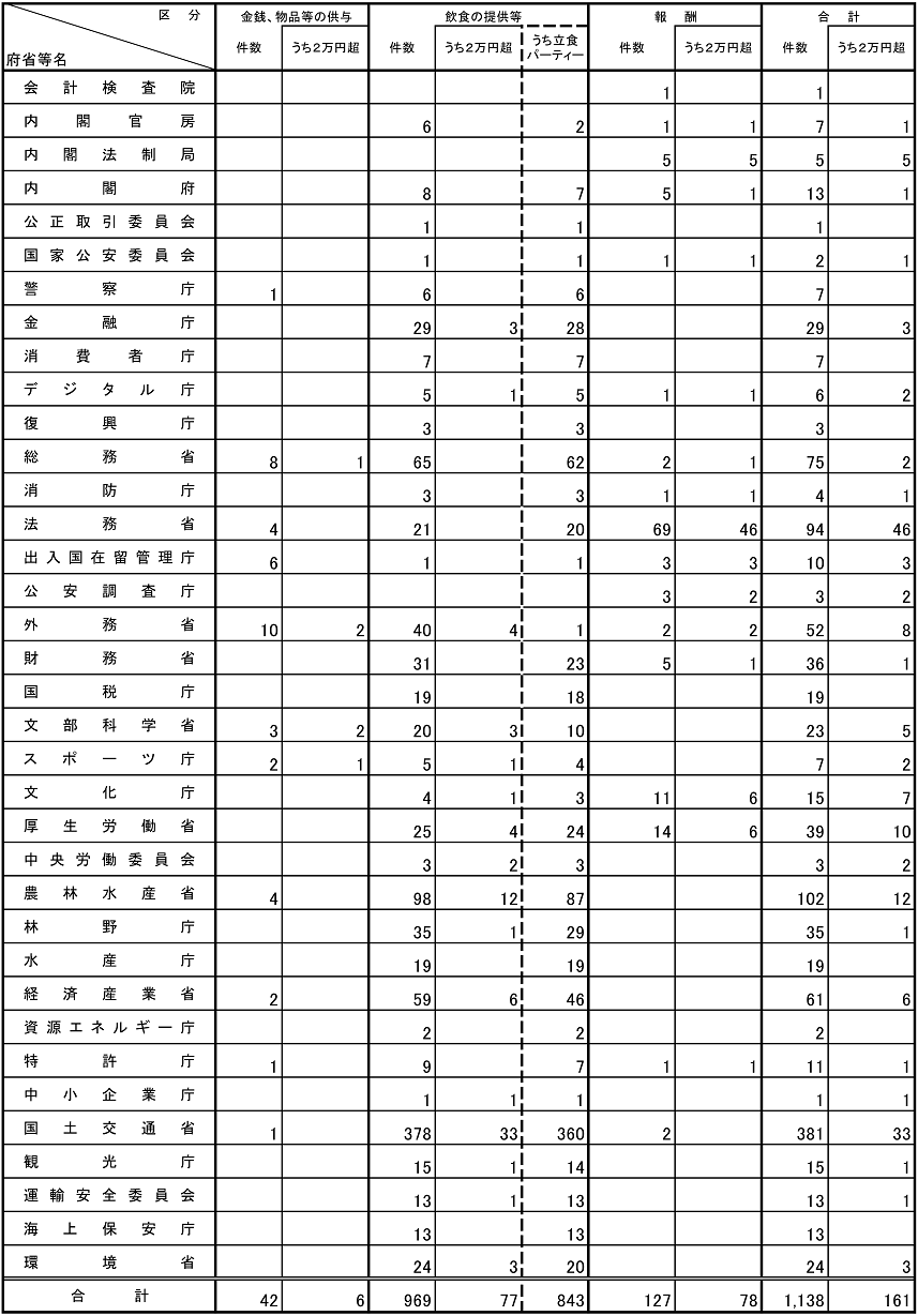 (注1)利害関係あり543件については、 多数の者が出席する立食パーティーにおいて飲食物の提供を受けたものなどであり、倫理規程における禁止行為の例外に該当する。