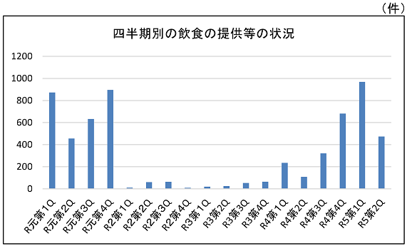 なお、令和元年度以降における飲食の提供等の状況は以下のとおりとなっている。