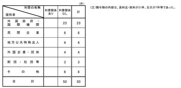 指定職以上の職員に係る贈与等報告書の提出状況について