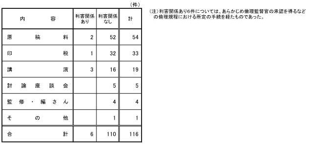 その結果、国家公務員倫理法又は国家公務員倫理規程(以下「倫理規程」という。)に違反するものはなかった。