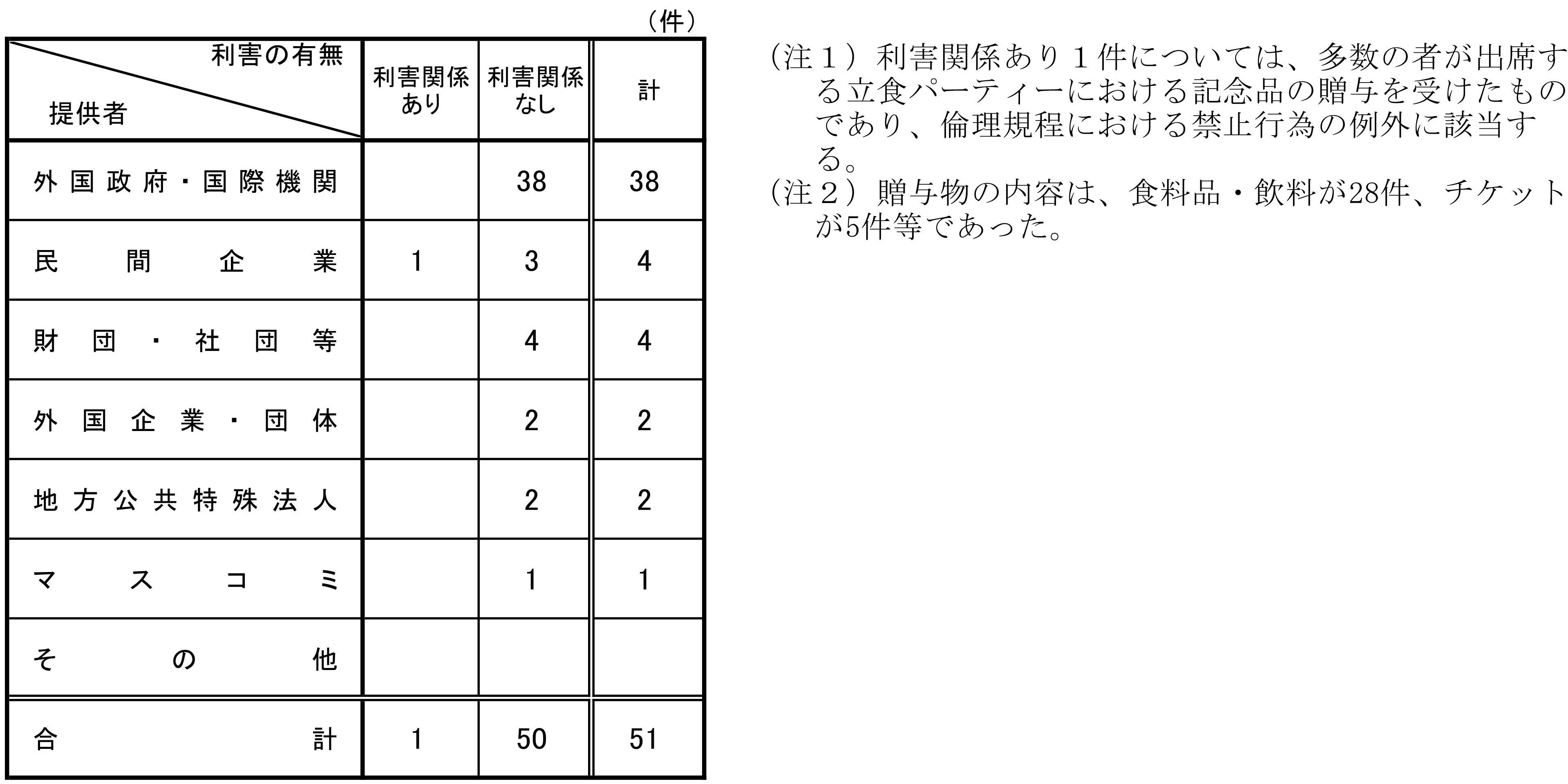 指定職以上の職員に係る贈与等報告書の提出状況について