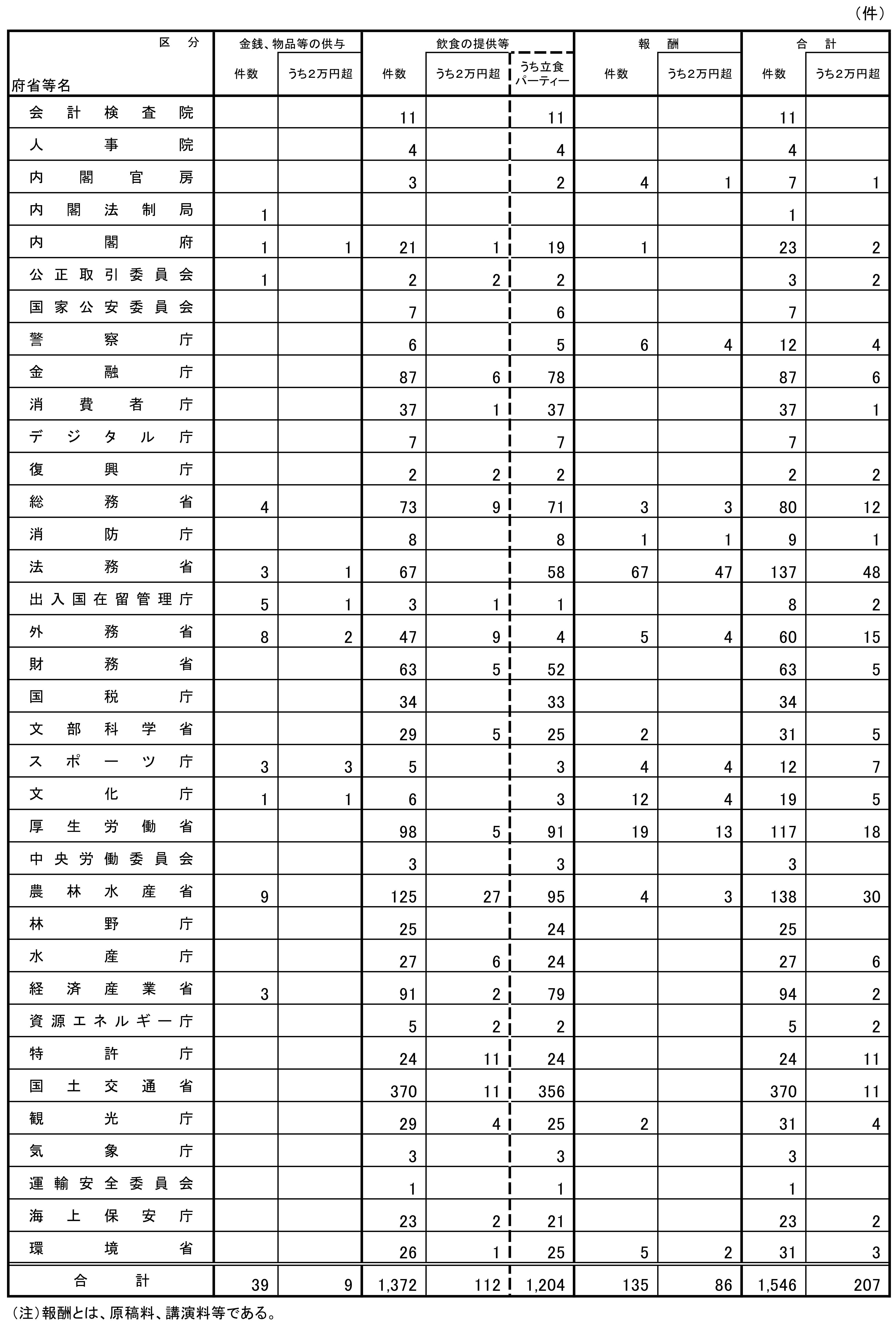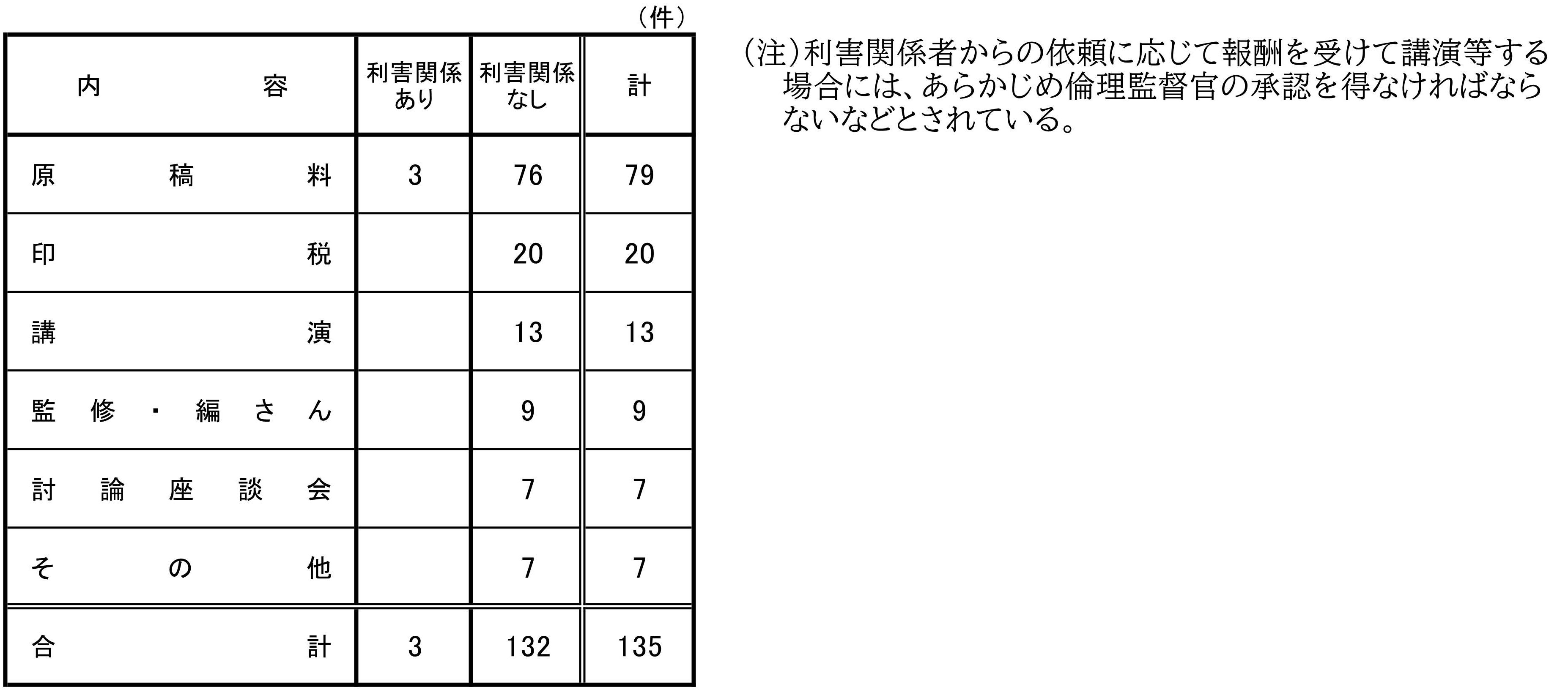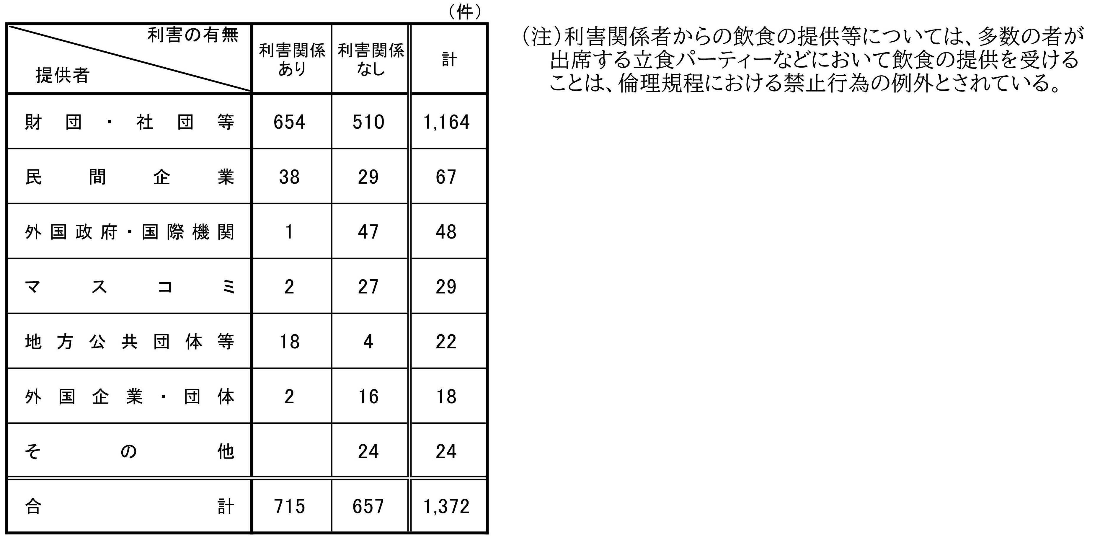 前年同期(令和5年度第4四半期)における提出件数と比較すると、今期は、金銭、物品等の供与が同件、飲食の提供等が379件、報酬が2件の増加となっている。