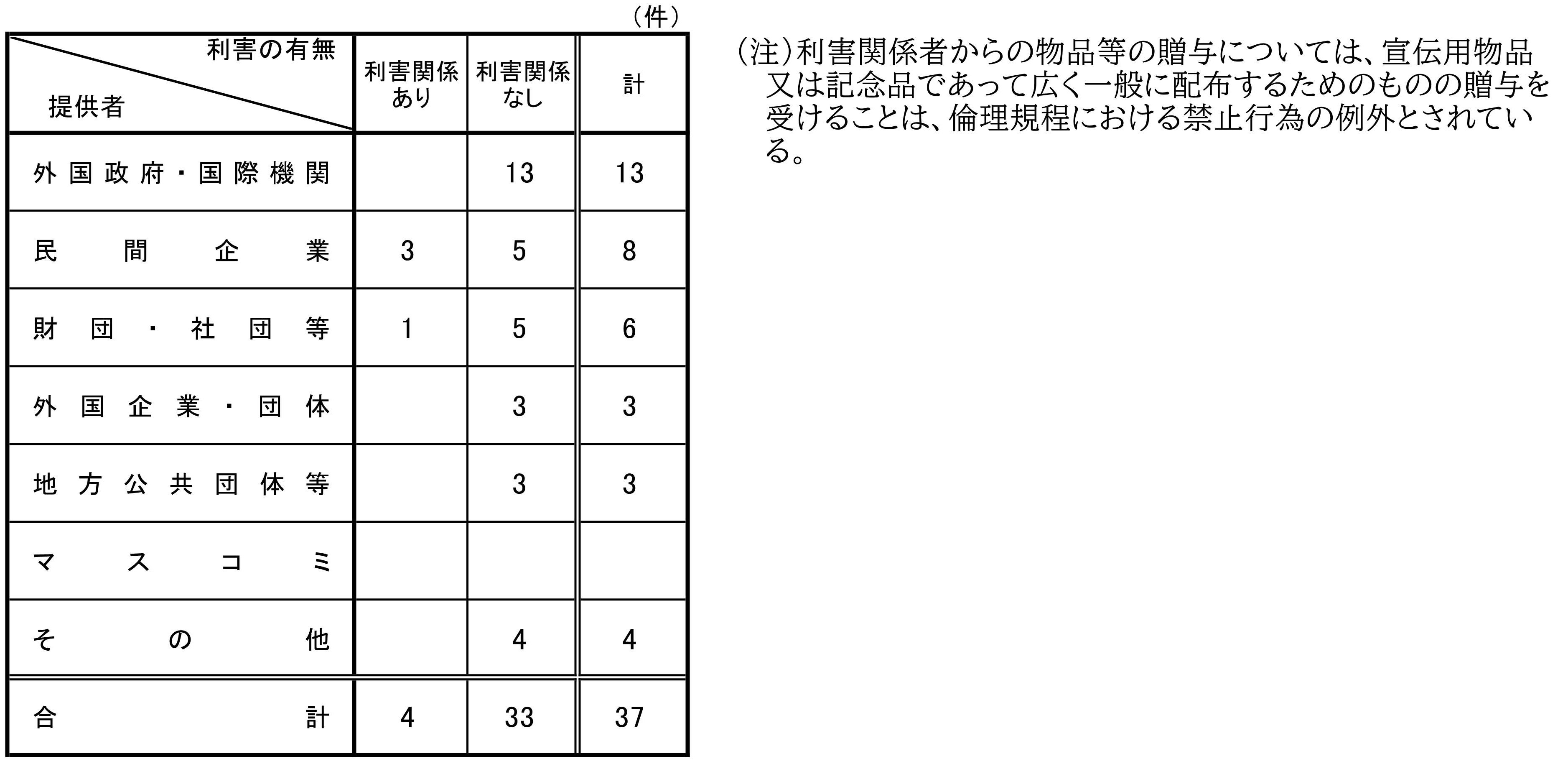指定職以上の職員に係る贈与等報告書の提出状況について