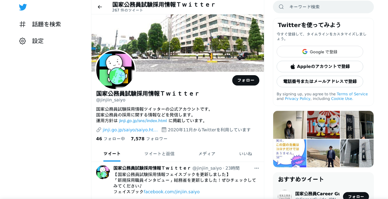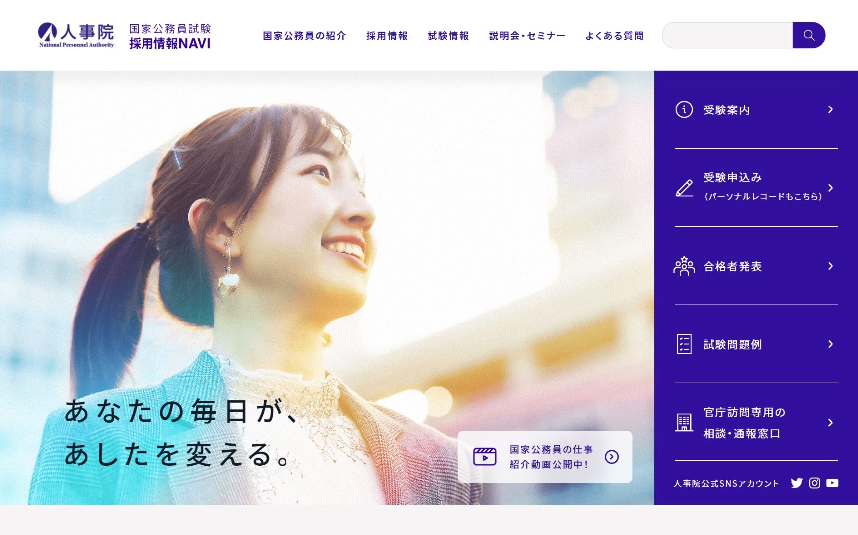| 国家公務員試験採用情報NAVI https://www.jinji.go.jp/saiyo.html |