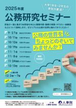 | 2025年度 公務研究セミナー | 国家公務員の仕事(各府省業務)について 各府省の職員が個別に説明します |