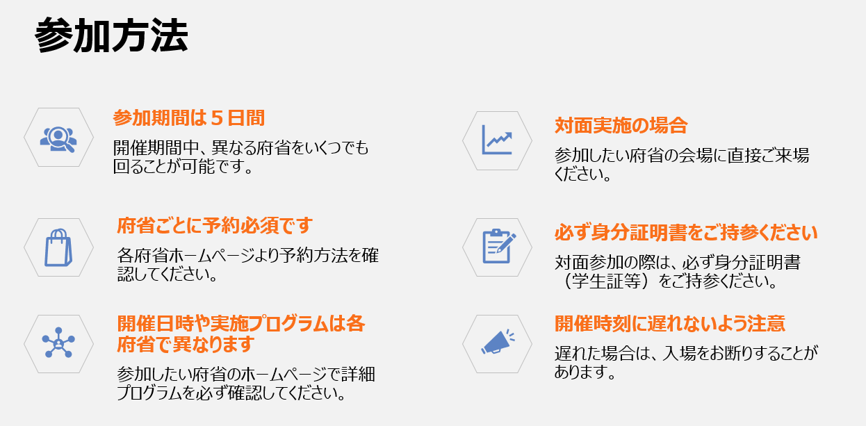 普段入ることのない中央省庁の庁舎内などで、ぜひ国家公務員のリアルを実感してください。