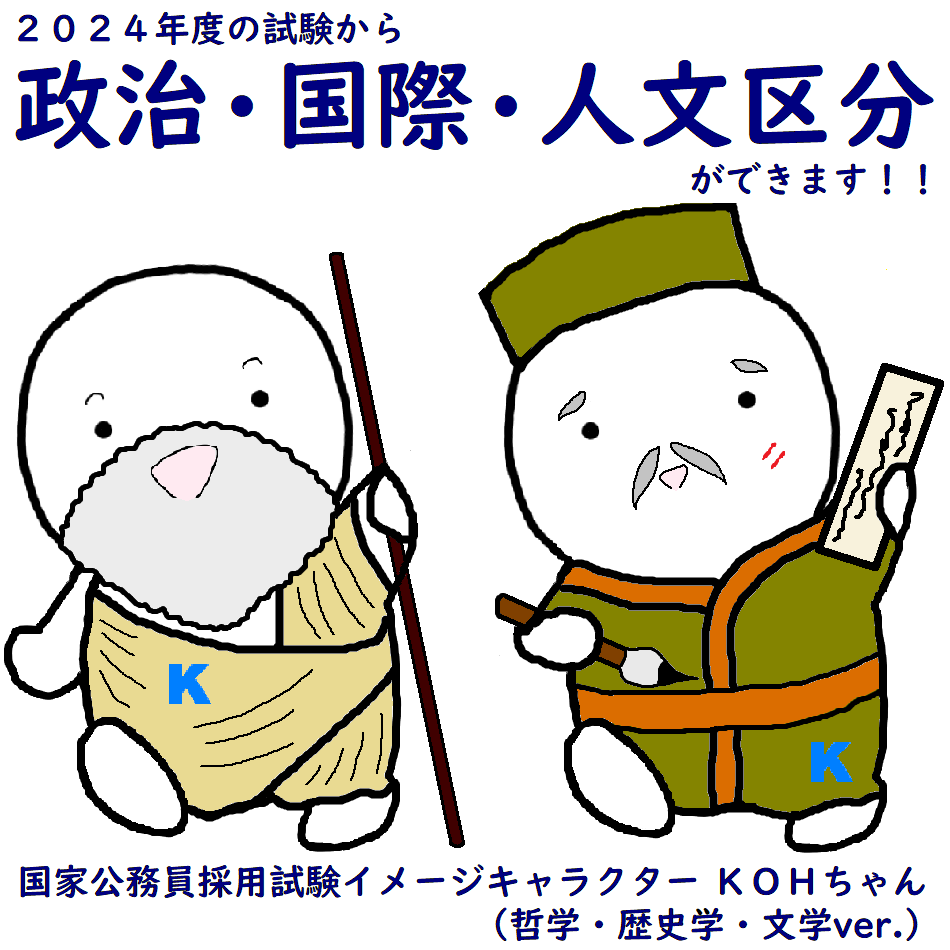 幅広い専門分野の人材を確保するため、2024年度の試験から、総合職試験(院卒者試験)「行政区分」選択Ⅰ「政治・国際系」と総合職試験(大卒程度試験)「政治・国際区分」を改編し、選択Ⅰ「政治・国際・人文系」と「政治・国際・人文区分」を創設します。思想・哲学、歴史学、文学・芸術、人文地理学・文化人類学といった分野が新たに出題され、人文系の専攻者が自らの専門分野を選択して受験できるようになります。 これまでの政治学・国際関係の専攻の方に加え、哲学・歴史学・文学等といった人文系の専攻の方の挑戦をお待ちしています。 |