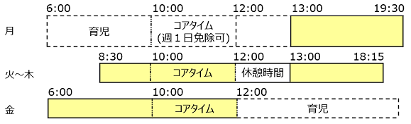 ◆コアタイム 10:00~12:00の2時間【月曜日は免除】