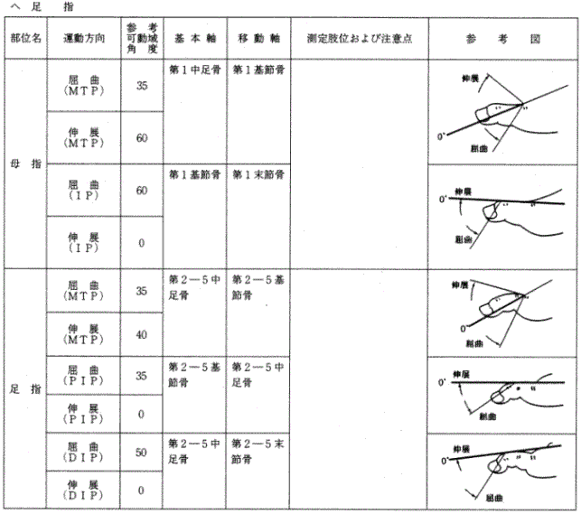 概ね自然立位での解剖学的肢位を基本肢位とし、その各関節の角度を0度とする。