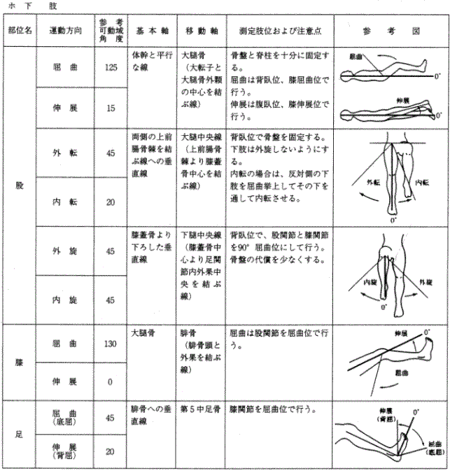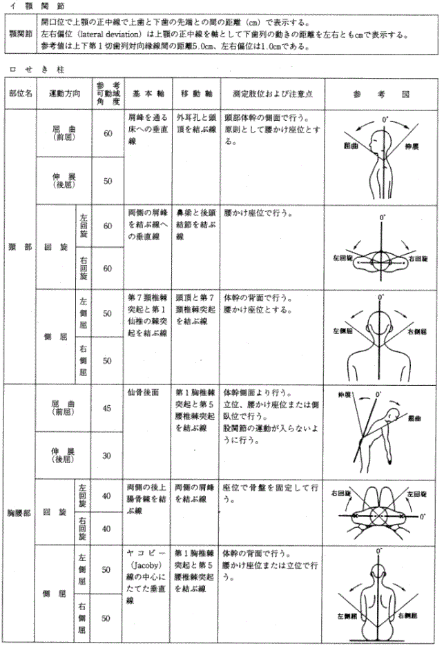 そこで、各論において述べる基本的な測定姿勢のほか、それぞれの事情に応じ、体位を変えて測定した値をも考慮して運動制限の範囲を測定しなければならない。