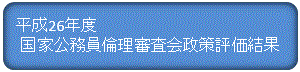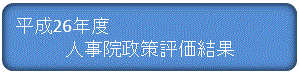平成26年度における人事院の政策評価は、「平成26年度人事院政策評価実施計画」に基づいて実施しました。なお、国家公務員倫理審査会の政策評価は、別に「平成26年度国家公務員倫理審査会政策評価実施計画」に基づいて実施しています。 全て印刷される方はこちらへ。