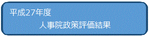 平成27年度における人事院の政策評価は、「平成27年度人事院政策評価実施計画」に基づいて実施しました。なお、国家公務員倫理審査会の政策評価は、別に「平成27年度国家公務員倫理審査会政策評価実施計画」に基づいて実施しています。 全て印刷される方はこちらへ。