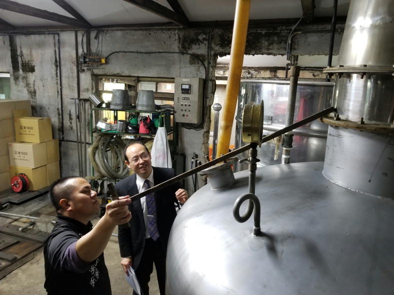 | ▲泡盛の臨場技術相談の様子(蒸留機) |