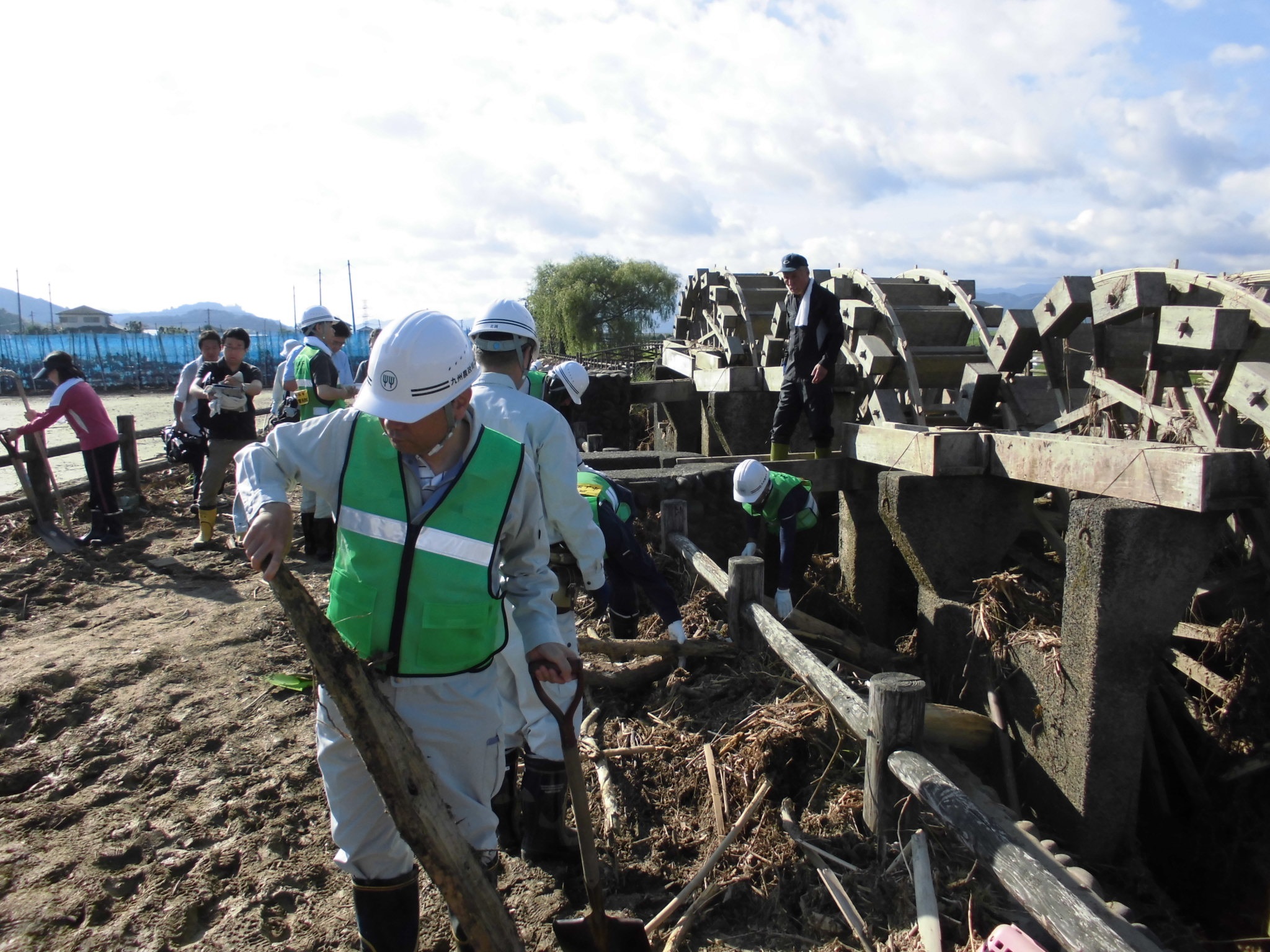 | ▲九州北部豪雨三連水車除去作業 |