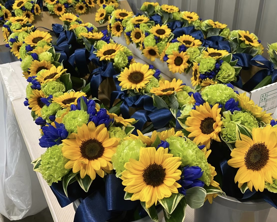 今大会は、真夏の東京という猛暑下での大会という、花にとっては過酷な状況のもとで開催されたことから、ブーケの鮮度をいかに保ったまま各競技会場に届けるかが課題でした。 |
