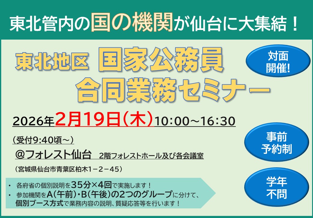 東北地区・国家公務員合同業務セミナー(2/19(木)開催)の情報を公開しました。