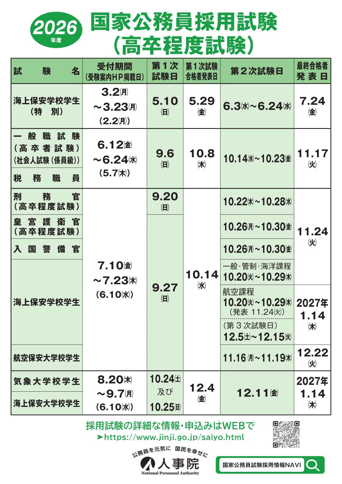 2025年度一般職試験(高卒者試験)採用予定機関一覧(事務東北区分、技術東北区分)を更新しました。