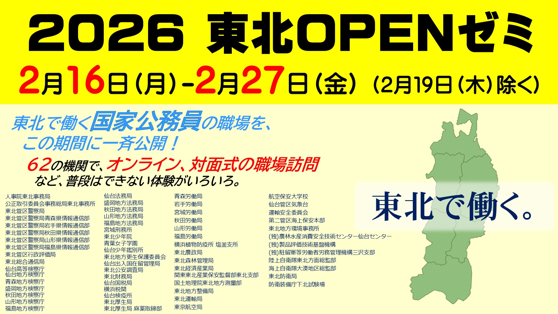 人事院東北事務局 東北OPENゼミの予約を開始しました!(2/17(火)・2/20(金)・2/27(金)実施)